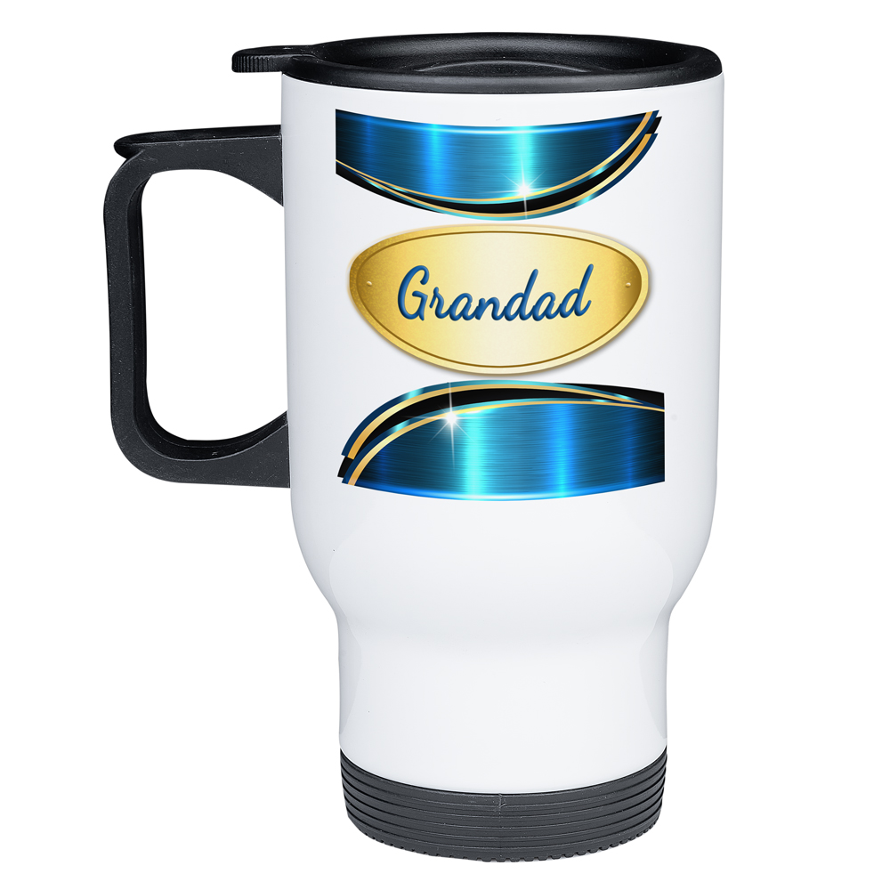 Blue Metallic Plaque Travel Mug, Thermal Mug Gifts, Present for Grandad, Father’s Day Travel Mug, Grandad Birthday Gift, Present for Grandad