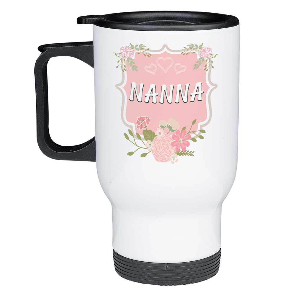 Floral Frame Nanna Travel Mug, Thermal Mug Gifts, Present for Nanna, Birthday Travel Mug, Nanna Birthday Gift, Gift for Nanna.