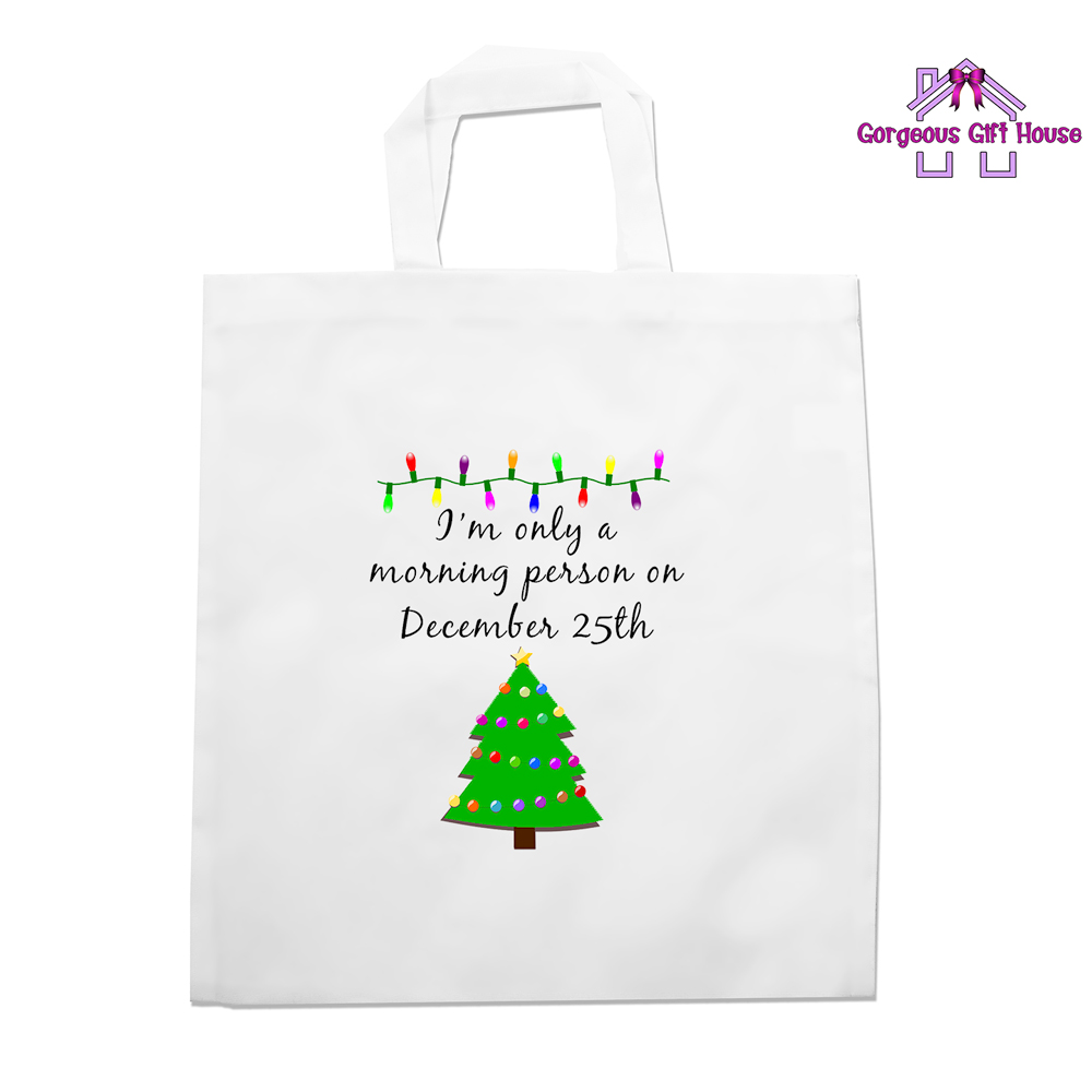 I’m Only A Morning Person On December 25th Tote Bag, Christmas Present, Stocking Filler, Secret Santa Gift