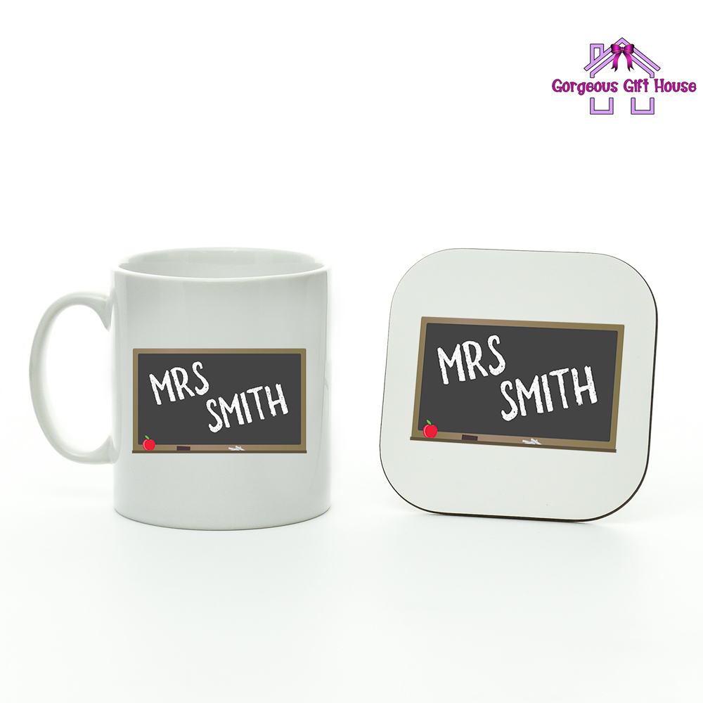 Personalised Teacher Name Blackboard Mug And Coaster Set, Teacher Gifts, End of Year Present, Gifts for Teachers, Teacher Presents