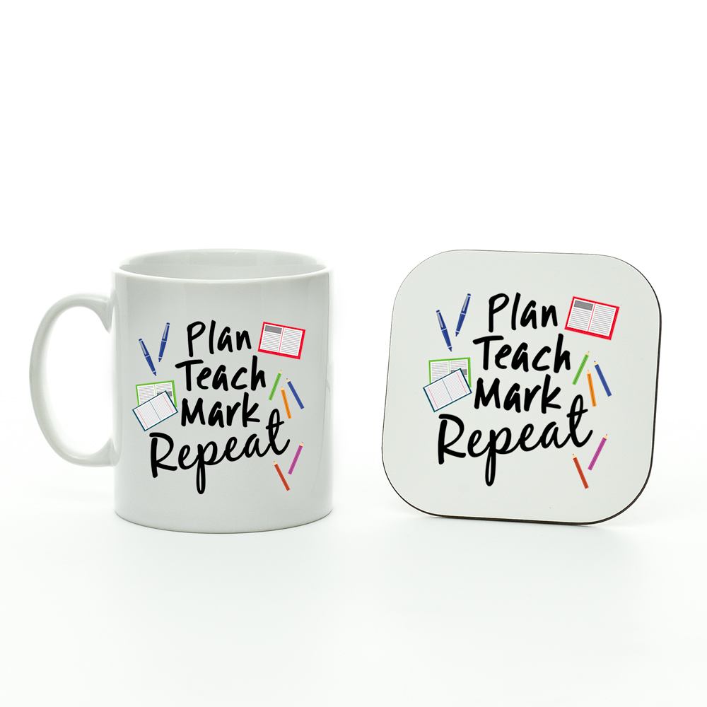 Plan, Teach, Mark, Repeat Mug And Coaster Set, Teacher Gifts, End of Year Present, Gifts for Teachers, Teacher Presents