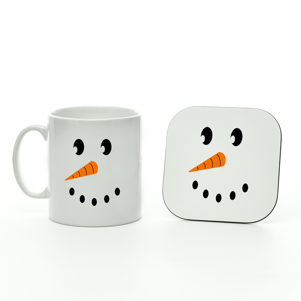 Snow Man Face Mug and Coaster Set, Christmas Gifts, Snowman Present, Stocking Filler, Christmas Gift Mug and Coaster Set, Christmas Present
